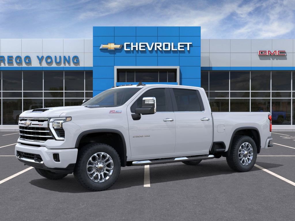 Rough, ready, and Diesel powered our 2025 Chevrolet Silverado 2500 LT Crew Cab 4X4 with the Convenience Pack rides with terrific truck appeal in Summit White! Motivated by TurboCharged 6.6 Liter DuraMax Diesel V8 offering 470hp and 975lb-ft of torque to a 10 Speed Allison Automatic transmission. An HD suspension and auto-locking rear differential help you handle hard work without breaking a sweat, and this Four Wheel Drive truck stands strong with impressive standard features. Highlights from our Convenience Pack add LED fog lamps/cargo-bed lighting to our Chevrolet's chrome bumpers, alloy wheels, power trailering mirrors, an EZ lift and lower tailgate, side/rear bed steps, and a trailer hitch.