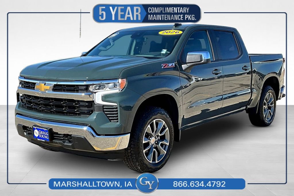 Designed to meet the busy demands of your day, our 2026 Chevrolet Silverado 1500 LT Crew Cab 4X4, with the Z71 Off-Road & Protection Package shows off in Cypress Gray. Powered by a 5.3 Liter V8 that serves up 355hp to a 10 Speed Automatic transmission for premium capability. An automatic locking rear differential helps you get a grip on your next challenge, as this Four Wheel Drive truck scores nearly 21mpg on the highway. Designed for busy owners like you, our Silverado 1500 looks fantastic with the Z71 Off-Road & Protection Pack's twin-tube shocks, hill descent control, skid plates, rear wheelhouse liners, ChevyTec spray-on Bedliner, Z71 badging, two-speed transfer case, dual exhaust, high-intensity LED headlamps, 20-inch wheels, chrome accents, a power lock/release EZ Lift tailgate, and LED bed lighting.