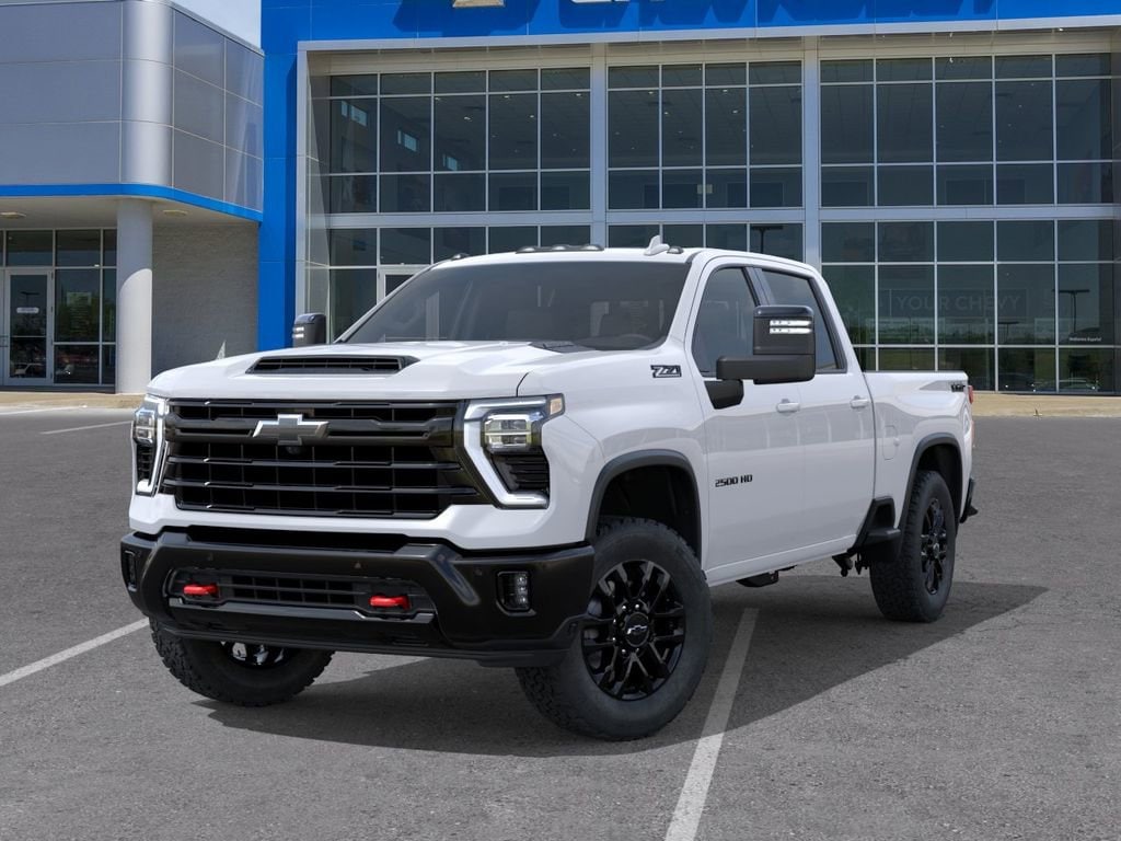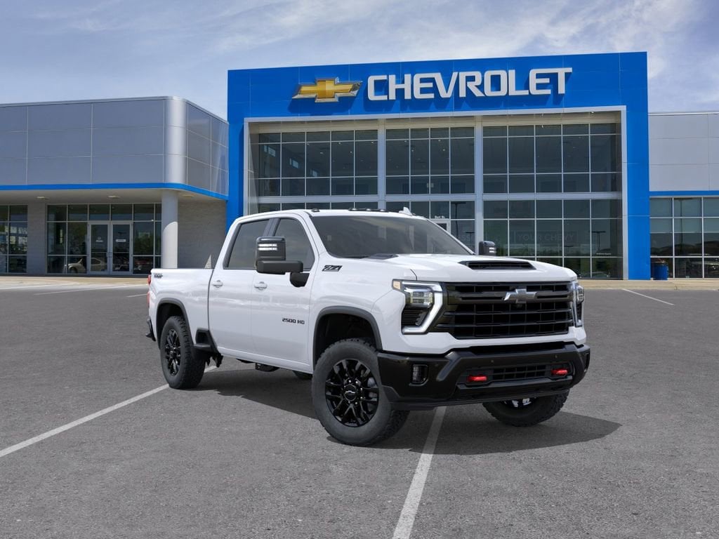 Refinement elevates capability in our 2026 Chevrolet Silverado 2500HD LTZ Crew Cab 4X4 featuring the Plus Package in Summit White, where upscale design details and LTZ appointments bring comfort and polish to heavy-duty work. Driven by a TurboCharged 6.6 Liter DuraMax Diesel V8 providing 470hp and 975lb-ft of torque to a 10 Speed Allison Automatic transmission for rewarding strength. Confidence comes standard with the automatic locking rear differential and HD suspension, and this Four Wheel Drive truck makes a fierce impression with its commanding design. Check out our Silverado's LED lighting, fog lamps, an EZ Lift power lock/release tailgate, stainless steel body moldings, chrome accents, a sunroof, power-folding trailer mirrors, bed steps, and 20-inch gloss black wheels.
