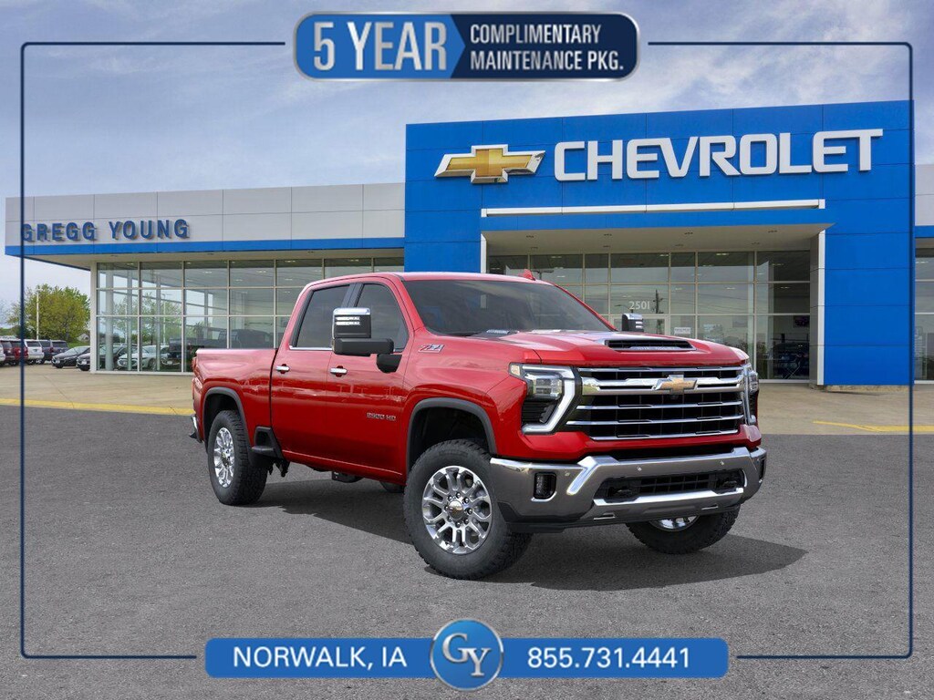 Our Diesel powered 2026 Chevrolet Silverado 2500 LTZ Crew Cab 4X4 is carefully equipped so you can concentrate on doing more in Radiant Red Tintcoat! Driven by a TurboCharged 6.6 Liter DuraMax Diesel V8 providing 470hp and 975lb-ft of torque to a 10 Speed Allison Automatic transmission for rewarding strength. Confidence comes standard with the automatic locking rear differential and HD suspension, and this Four Wheel Drive truck makes a fierce impression with its commanding design. Check out our Silverado's LED lighting, fog lamps, an EZ Lift power lock/release tailgate, stainless steel body moldings, chrome accents, power-folding trailer mirrors, bed steps, and alloy wheels.The ergonomic layout in our LTZ cabin helps you stay comfortable as you stay busy. Highlights include heated/cooled leather power front seats, a heated-wrapped steering wheel, dual-zone automatic climate control, remote start, and intelligent infotainment technology. It's easy to stay connected since a 13.4-inch touchscreen, 12.3-inch driver display, Google Built-in, wireless Apple CarPlay/Android Auto, WiFi compatibility, Bluetooth, and six-speaker audio are standard.Staying safe is simple, too. Chevrolet helps you take on your days with automatic braking, forward collision alert, a following distance indicator, hitch guidance, a rearview camera, trailer sway control, and more. Drive our Silverado 2500 LTZ and feel ready to do it all! Save this Page and Call for Availability. We Know You Will Enjoy Your Test Drive Towards Ownership! We offer PRE-APPROVAL programs so call (515) 256-4010 to get started today! At Gregg Young Chevrolet... We'll Go The Extra Mile For You. We have an app for that! Download the Gregg Young Chevrolet application directly to your iPhone or Android. All prices are plus tax, title, license, and fees. $1000 - Chevrolet Consumer Cash Program. Exp. 03/02/2026