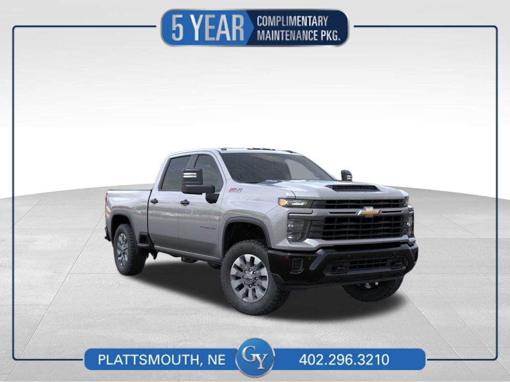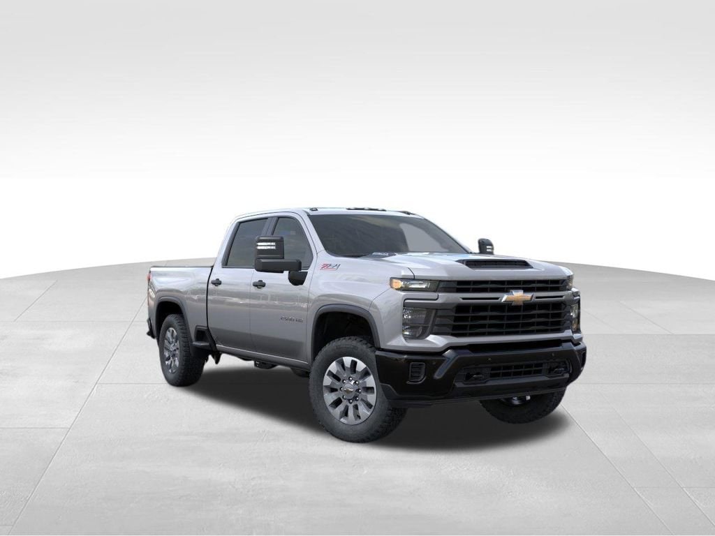 Clean design and purposeful details define our 2026 Chevrolet Silverado 2500HD Custom Crew Cab 4X4 in Sterling Gray Metallic, offering a confident presence with just the right balance of comfort and durability. Motivated by a 6.6 Liter V8 offering 401hp to a 10 Speed Allison Automatic transmission for heavy-duty strength to spare. This Four Wheel Drive truck also has an auto-locking rear differential and a robust suspension to help get the most out of its mighty engine. Our Silverado 2500 looks great whether it's towing, hauling, or taking on other tough challenges, thanks to its LED taillamps, black accents, black recovery hooks, side/rear bed steps, box lighting, a hitch receiver, vertical trailer mirrors, and a locking tailgate.