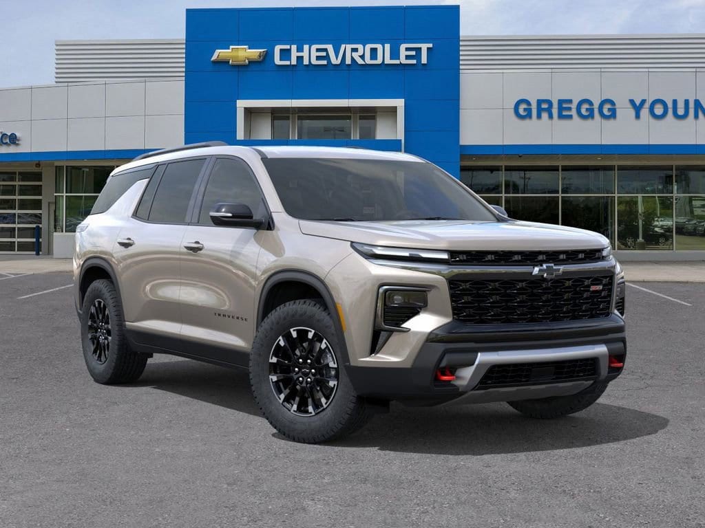 With rugged touches and premium comfort, our 2026 Chevrolet Traverse Z71 AWD in Sandstone Gray offers a confident way forward for families who want all-weather traction and SUV capability. Powered by a TurboCharged 2.5 Liter 4 Cylinder offering 328hp to an 8 Speed Automatic transmission. You can push ahead off the pavement with an off-road suspension, twin-clutch AWD system, and terrain mode selector, and this All Wheel Drive SUV returns nearly 24mpg on the highway. A sporty gloss-black grille sets the tone for aggressive Traverse style with matching accents, LED lighting, bold alloy wheels, roof rails, red tow hooks, a trailer hitch, and a hands-free liftgate.