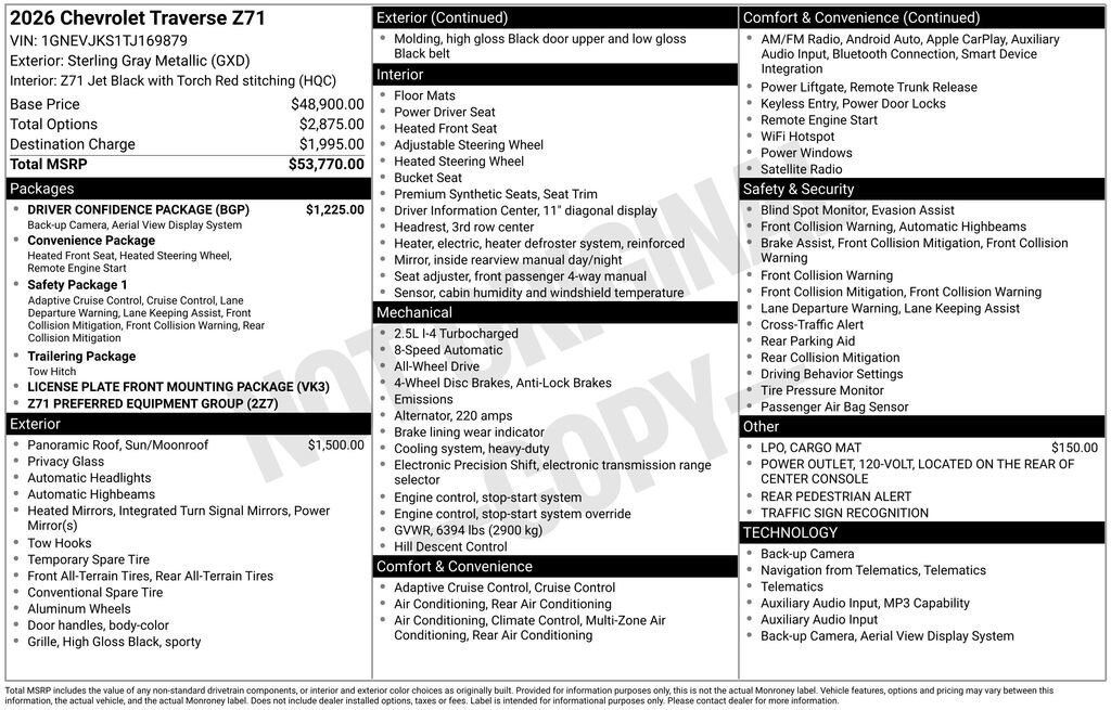 New 2026 ChevroletTraverse Z71