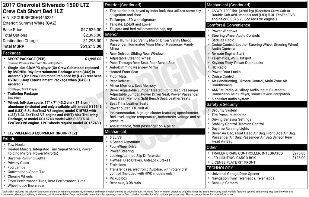 Chevrolet is built strong with the trailering package and received top safety scores with high-strength steel, Stabilitrak, ABS, daytime running lamps, and plenty of airbags. You deserve a truck that can keep up with you, whether conquering your work day or playing hard on the weekend. Reward yourself with this Silverado 1500 LTZ! Save this Page and Call for Availability. We Know You Will Enjoy Your Test Drive Towards Ownership!