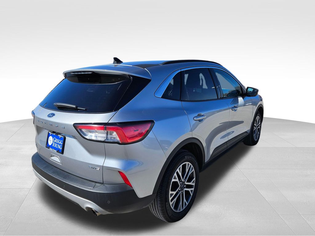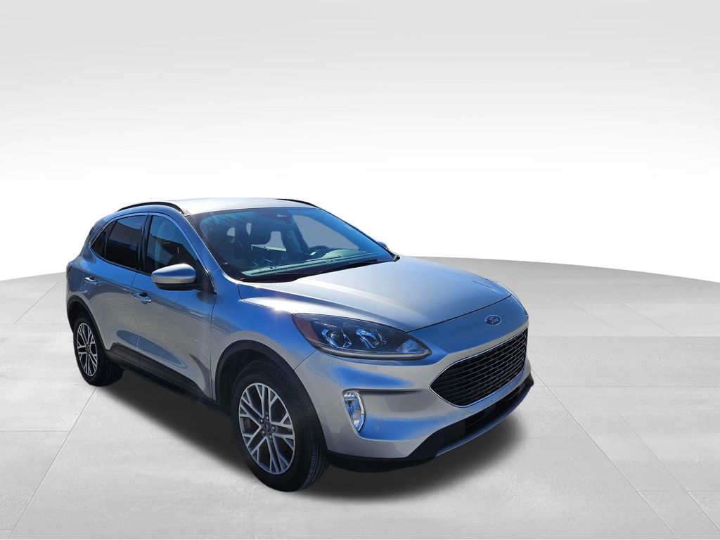 Our One Owner 2021 Ford Escape SEL AWD in Iconic Silver is for active owners who demand comfort and capability! Motivated by a TurboCharged 1.5 Liter EcoBoost 4 Cylinder providing 181hp connected to an 8 Speed Automatic transmission. You're free to move through your world confidently in this All Wheel Drive SUV that combines responsive handling with the ability to return nearly 31mpg on the highway. Our Escape's exterior design adds a bold and athletic vibe with accents such as LED lighting, fog lamps, heated power mirrors, dual chrome exhaust outlets, alloy wheels, molded-in skid plates, and a convenient power liftgate.
