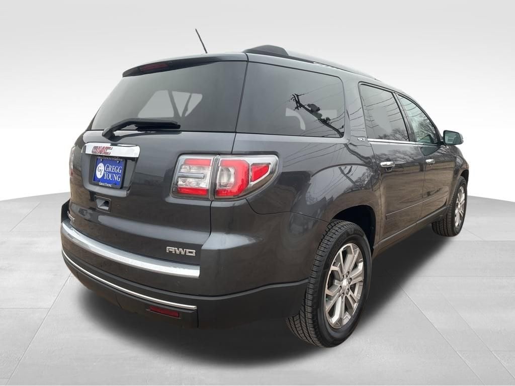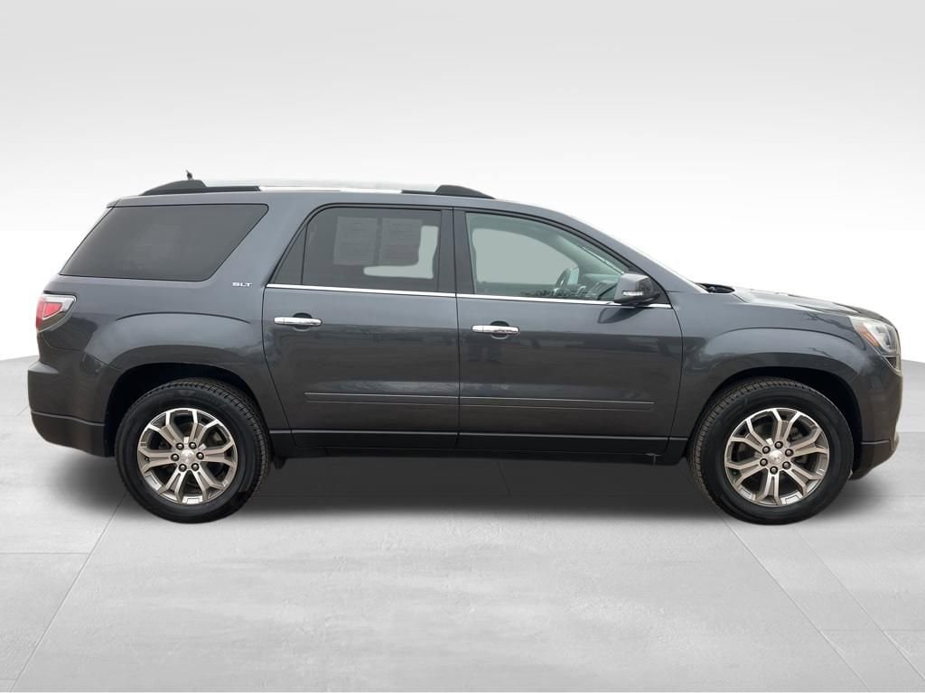 With accommodating space and functionality paired with rugged good looks, our Accident Free 2014 GMC Acadia SLT-1 AWD presented in Cyber Gray Metallic can handle your every need. Powered by a 3.6 Liter V6 that offers 288hp paired with a 6 Speed Automatic transmission. This All Wheel Drive SUV secures up to 24mpg on the highway and will take you down the highway in ease and comfort with definitive lines and curves that depict the luxury and are highlighted by 19-inch wheels and fog lamps for a bold stance that inspires confidence.