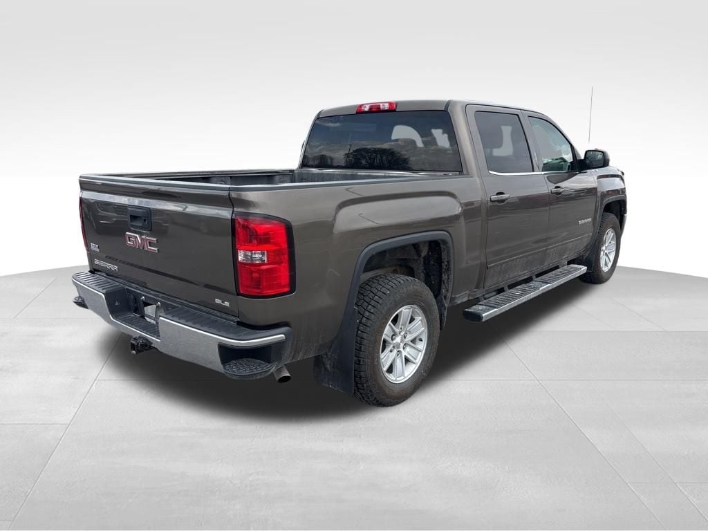 Our Accident Free 2014 GMC Sierra 1500 SLE Crew Cab 4X4 proudly displayed in beautiful Bronze Alloy Metallic is ready! Powered by a 4.3 Liter V6 that supplies 285hp paired with a 6 Speed Automatic transmission for easy passing. This Four Wheel Drive with coil-over-shock front suspension provides a sure-footed stance against Mother Nature and up to 23mpg on the road. Our Sierra is accentuated by 17-inch stainless steel finish wheels, deep-tint glass, and an E-Z lift/lower tailgate.