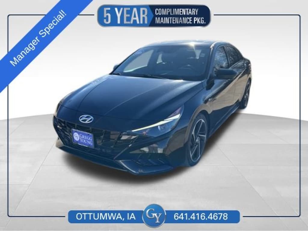 Our fierce **One Owner**Accident Free**2023**Hyundai**Elantra**N Line**Sedan**Navigation**Sunroof** is fantastically fun to drive in Black! Powered by a TurboCharged 1.6 Liter 4 Cylinder that supplies 201hp connected to a paddle-shifted 7 Speed Dual-clutch Automatic transmission for dynamic acceleration. This Front Wheel Drive sedan also has athletic handling, and it returns nearly 36mpg on the highway with a spirited sport-compact design. Just check out the way our Elantra blends its unique N Line gloss-black grille, bumpers, and rear diffuser with LED lighting, a power sunroof, a hands-free trunk, alloy wheels, heated power mirrors, and twin chrome exhaust outlets.
