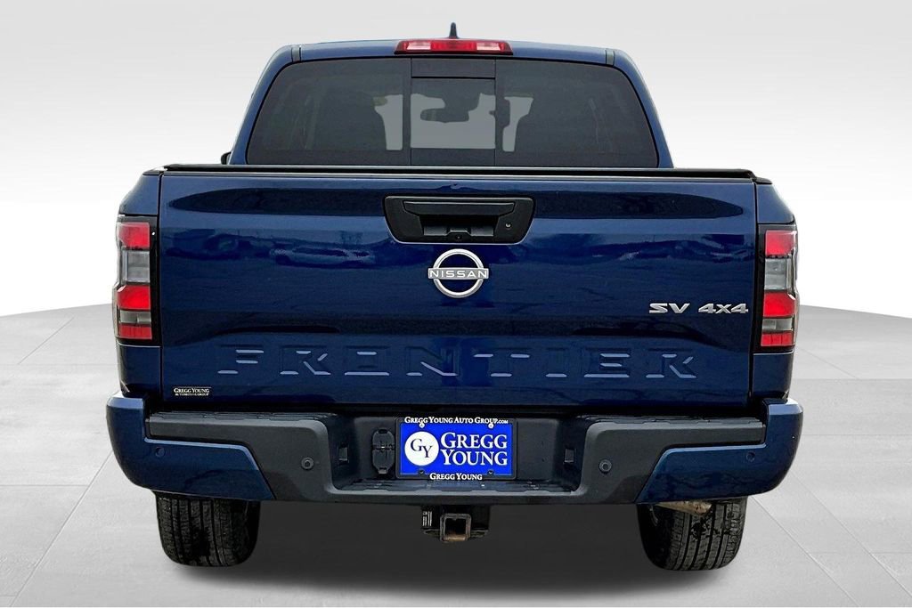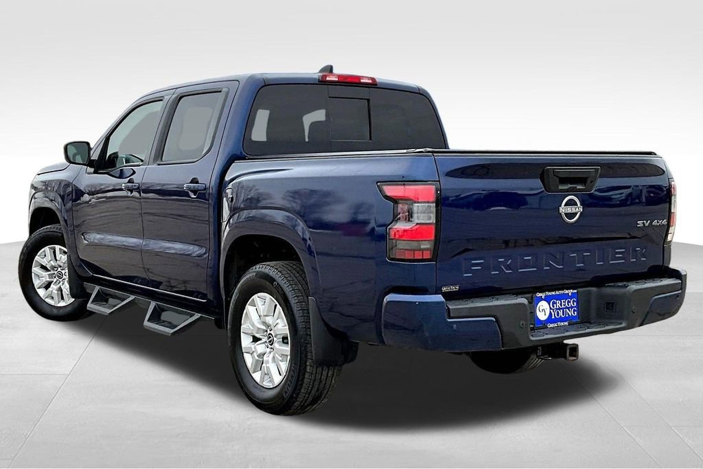 Our bold 2023 Nissan Frontier SV Crew Cab 4X4 with the Convenience Pack in Deep Blue Pearl helps you stay in your comfort zone even when pushing your limits! Powered by a 3.8 Liter V6 offering 310hp paired to a 9 Speed Automatic transmission for taking on difficult challenges with ease. A Dana rear axle and hill-descent control help deliver robust capability, and this Four Wheel Drive truck achieves nearly 23mpg on the highway. Fantastic Frontier features include assist steps and a tonneau cover, and features form the Convenience Pack including a spray-on bedliner, fog lights, under-rail bed lighting, a 120V power outlet, and a Class IV hitch receiver to LED taillamps, alloy wheels, a front skid plate, and a damped tailgate.