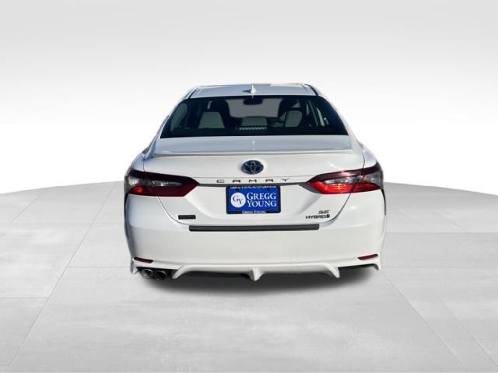 Impressively rewarding to drive, our **One Owner**Accident Free**2021**Toyota**Camry Hybrid**SE**Sedan**Apple CarPlay/Android Auto**Rear Camera** blends efficiency and a bold Super White design! Powered by a 2.5 Liter Dynamic Force 4 Cylinder and an Electric Motor for a combined 208hp matched to a CVT for athletic performance without sacrificing fuel economy. Also featuring a sport-tuned suspension for sharper handling, this Front Wheel Drive sedan returns nearly 47mpg on the highway with revved-up style cues like LED lighting, 18-inch black alloy wheels, aggressive rocker panels, a rear spoiler, and dual chrome-tipped exhaust outlets.